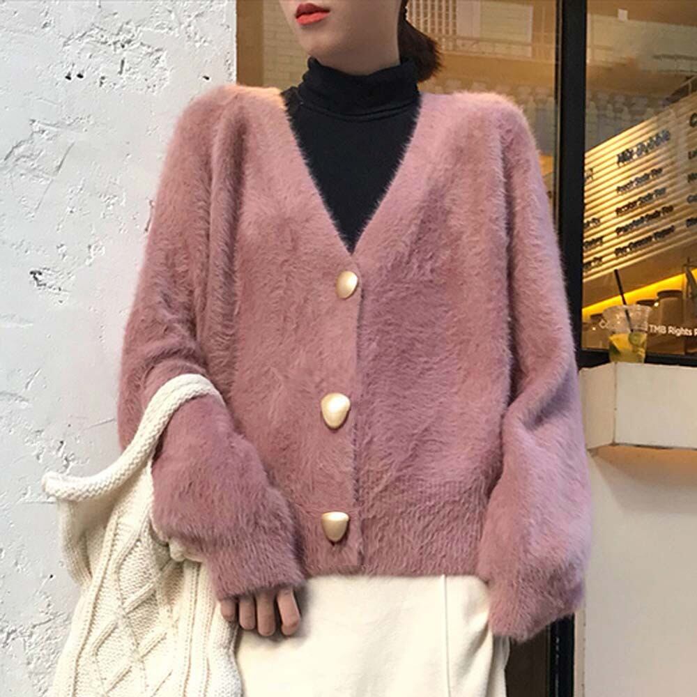 ●ふわふわニット素材で女の子らしくキまるVネックカーディガンです!