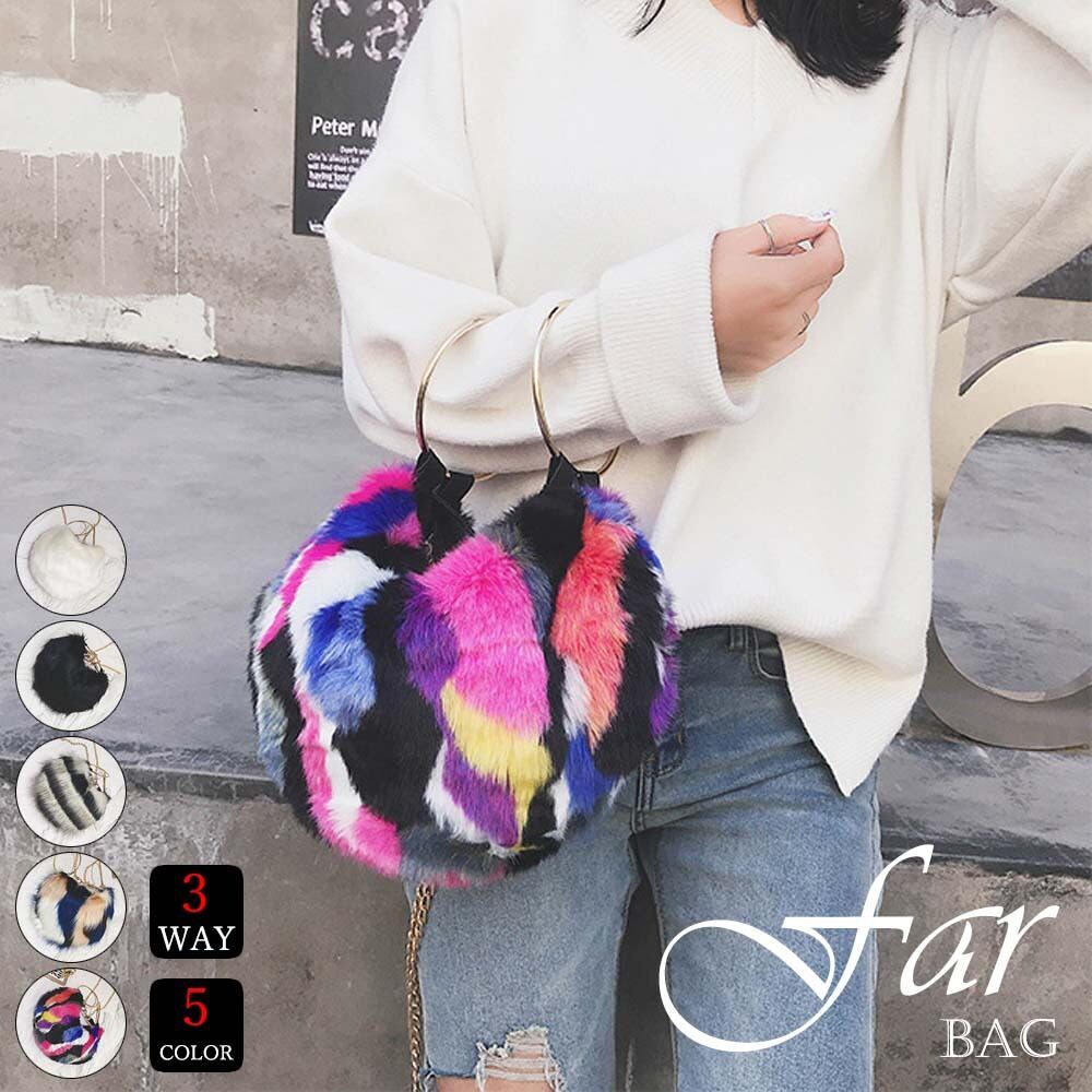 ファーバッグ レディース ミックスファ ショルダーバッグ 無地 3wayリングバッグ 即納