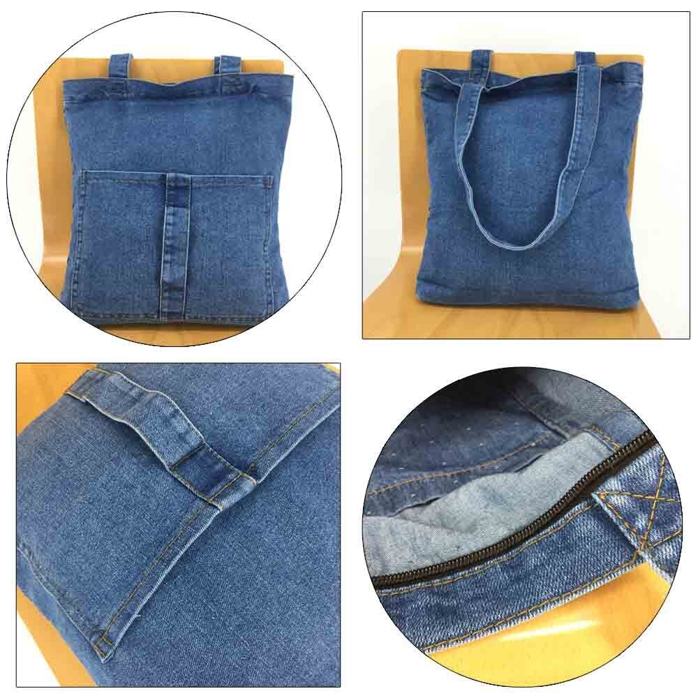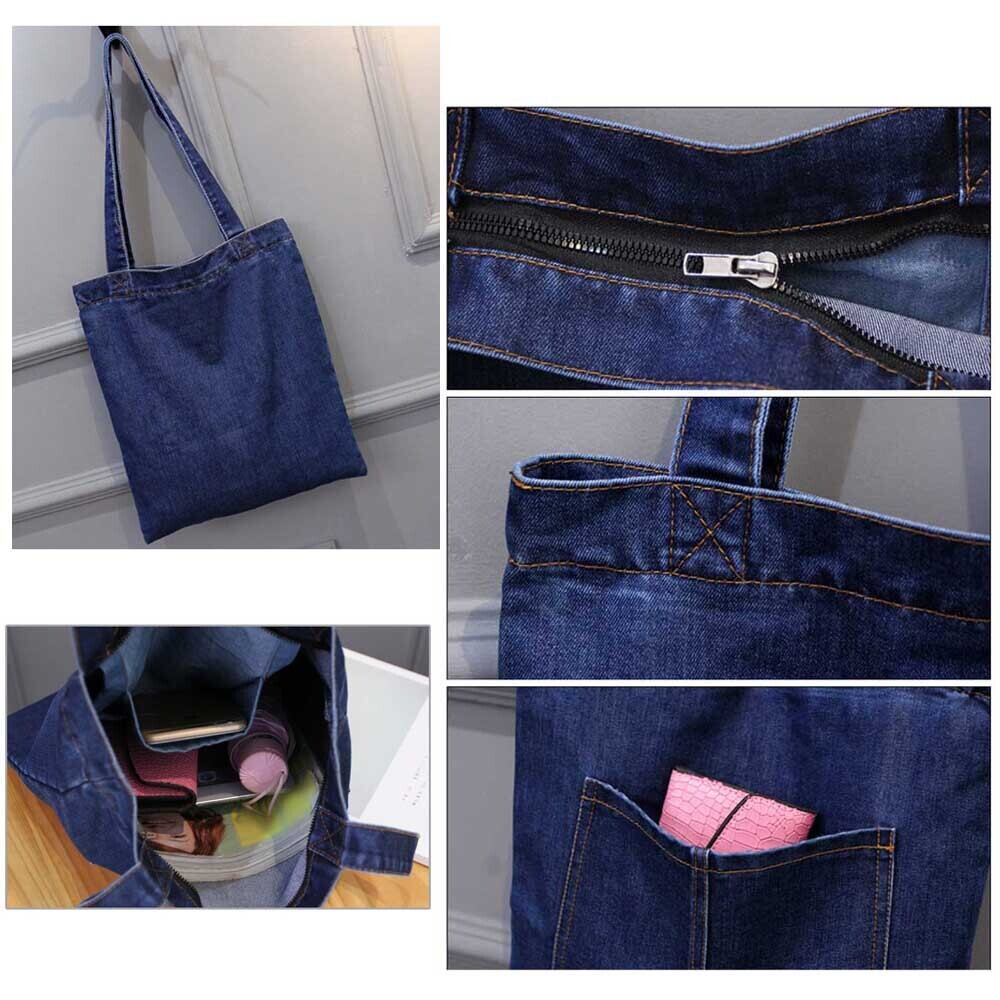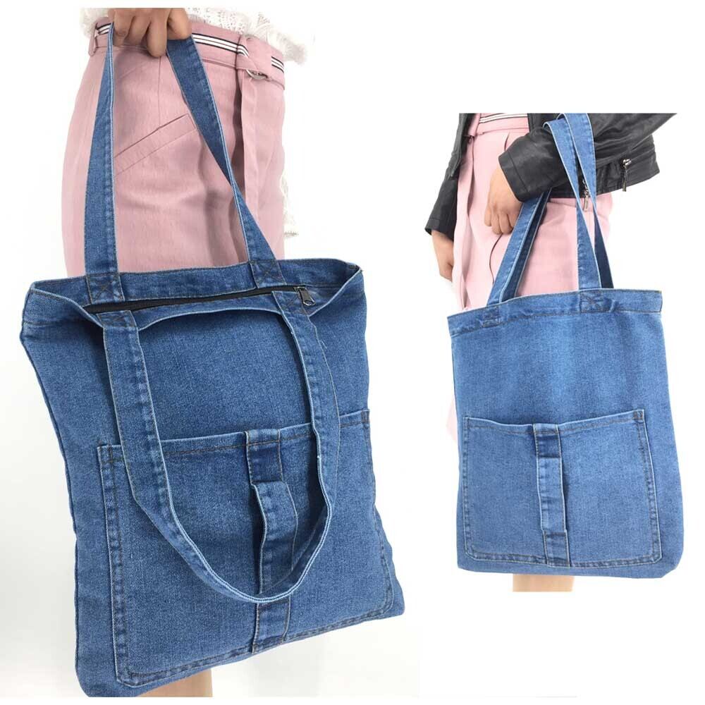 △エコバッグ a4バッグ ファスナー付きトートバッグ デニムバッグ 手提げバッグ