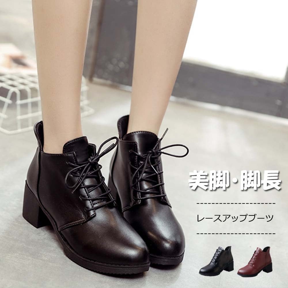 レースアップ ブーティ ローヒール ショートブーツ レディース 履きやすい 即納