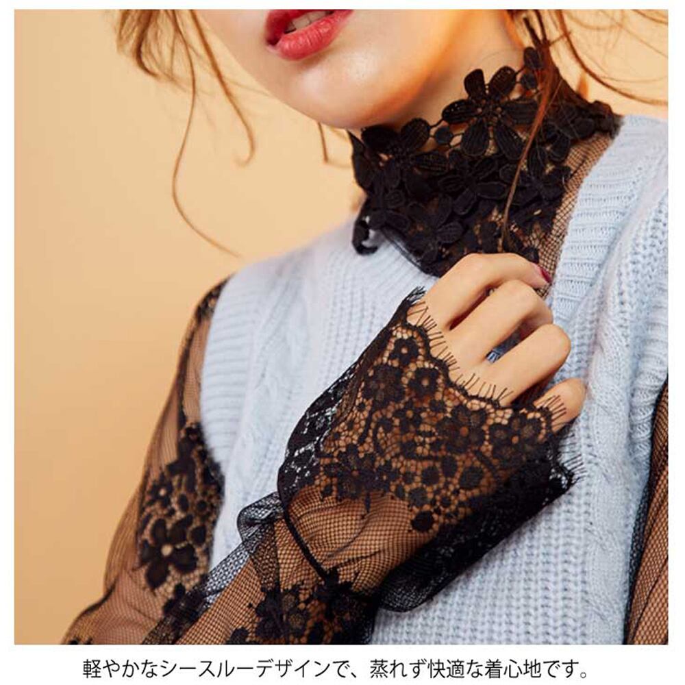 シースルー ブラウス レディース レース インナー 刺しゅう ハイネック チュール 花柄 即納
