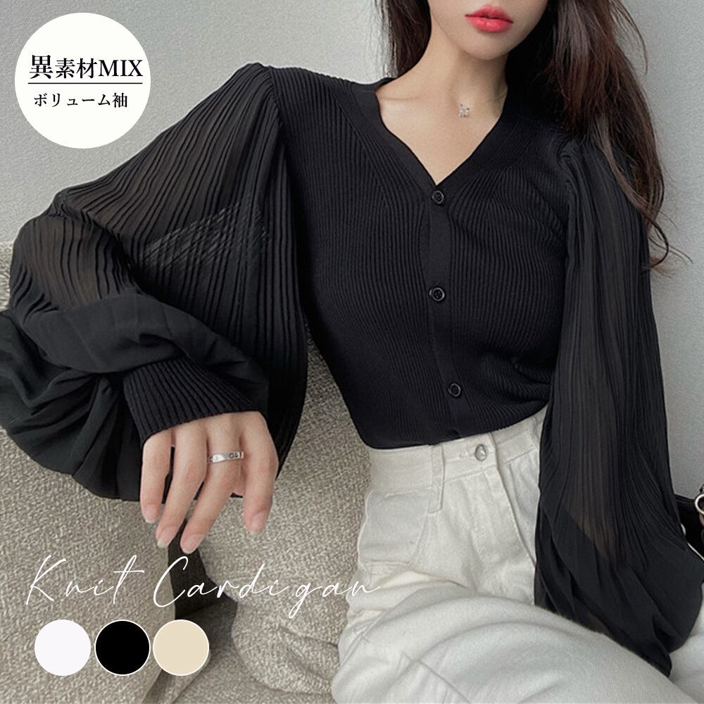 ◇ニットカーディガンボリューム袖Vネック 即納