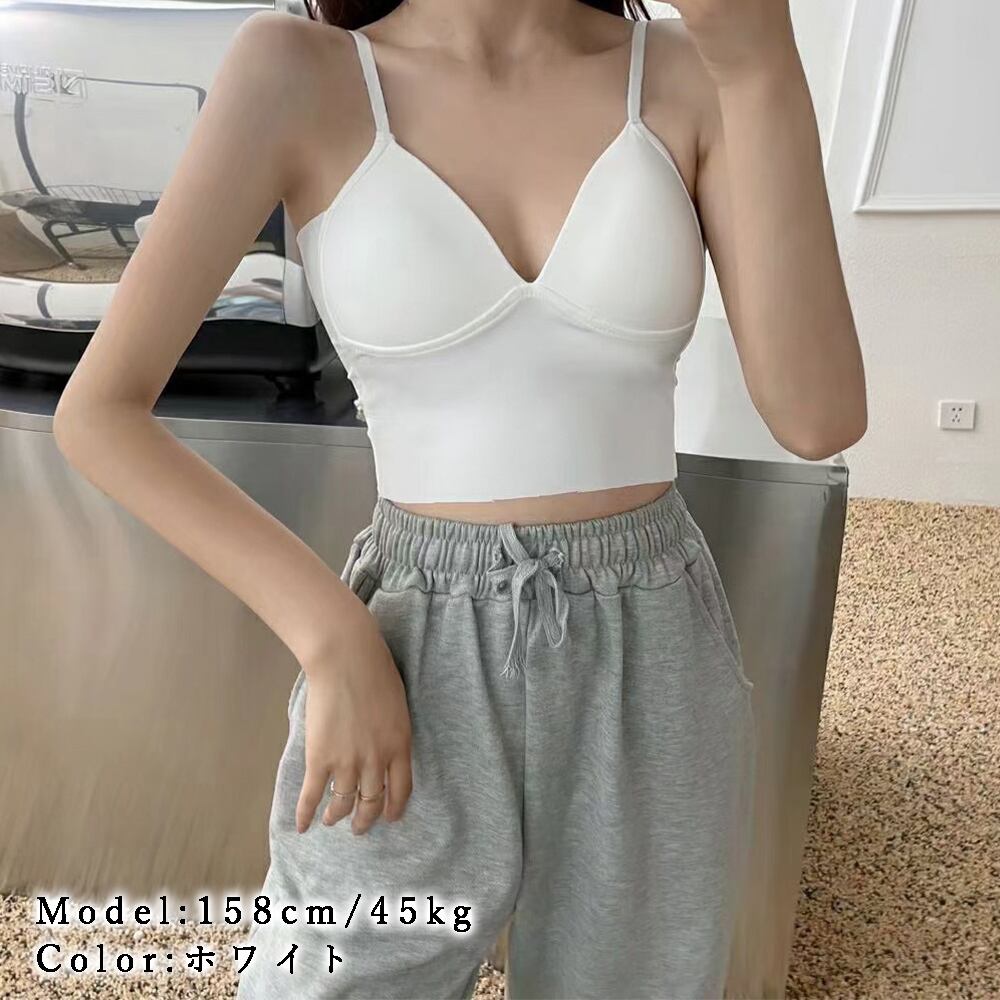 △Vネック ノンワイヤー ショート丈 ブラトップ カップ付きキャミソール