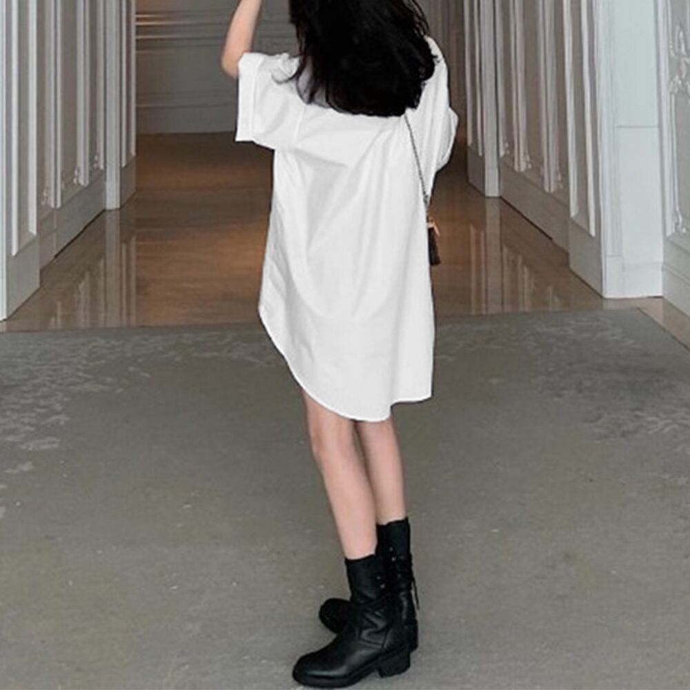 無地シャツブラウス 通勤 通学 羽織 着やせワンピース