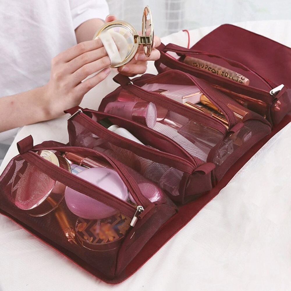 ●4つのメッシュポーチが一つになりコンパクトにまとまる便利な折り畳み式ポーチです!